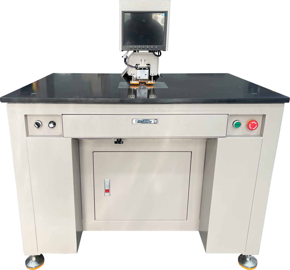 全自动图象识别,自动冲孔,彩色显示器大视窗靶型显示, 不伤眼睛。能有效识别圆形、环形、十字形、分裂环等,在靶标发生残缺、变形时可保证中心不变。冲孔时由设备上的压脚压平被冲孔的薄膜,冲孔更精准。工作机构采用机械与气动结合,冲孔力大大提高,可自动计数产量,节省人工。大理石工作台面,永不磨损