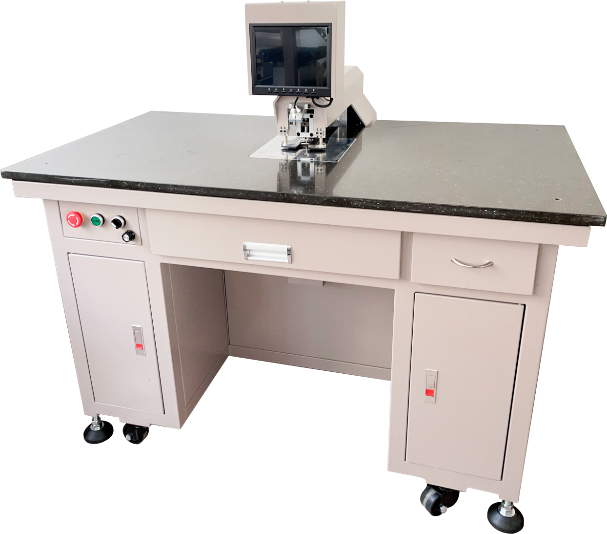 全自动图象识别,自动冲孔,彩色显示器大视窗靶型显示, 不伤眼睛。能有效识别圆形、环形、十字形、分裂环等,在靶标发生残缺、变形时可保证中心不变。冲孔时由设备上的压脚压平被冲孔的薄膜,冲孔更精准。工作机构采用机械与气动结合,冲孔力大大提高,可自动计数产量,节省人工。大理石工作台面,永不磨损